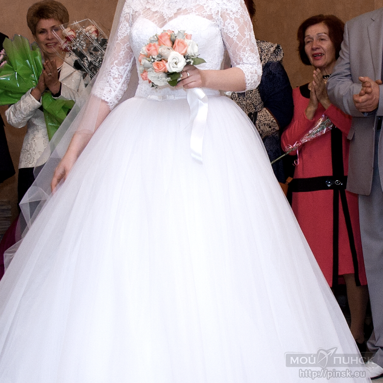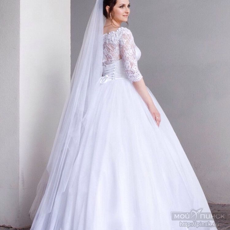 Продам белоснежное красивое свадебное платье, размер 44-46. Смотрится очень эффектно! Одето было один раз после покупки в свадебном салоне. После свадьбы проведена полная и бережная химчистка. Состояние нового, 100%, никаких дефектов, пятен, затяжек, на месте все петельки и пуговицы. Хранится в чехле. Платье находится в г. Пинске. Возможна доставка или другие варианты (обсуждаемо). Торг.