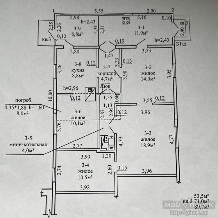 Продаётся часть жилого дома (выделенная квартира) в центре города по улице Ленинградская. Общая площадь по СНБ 89,7 м², общая площадь жилого помещения 71,0 м², жилая 53,5 м². 4 жилые комнаты. Два входа с разных сторон, при необходимости можно разделить на 2 отдельных жилья, закрыв всего одну дверь. Дом из бруса, на крыше - жесть, окна деревянные. Отопление - твердотопливный котёл, батареи разведены в жилых комнатах, есть печь. Вода центральная (холодная), канализация местная, газ привозной в баллонах, идёт по улице. Общая площадь участка 0,1498 га. Огорожен, отдельный вход от соседей, есть заезд для авто. Подъезд асфальтирован. Дом находится в тупике, нет шума от дороги.
